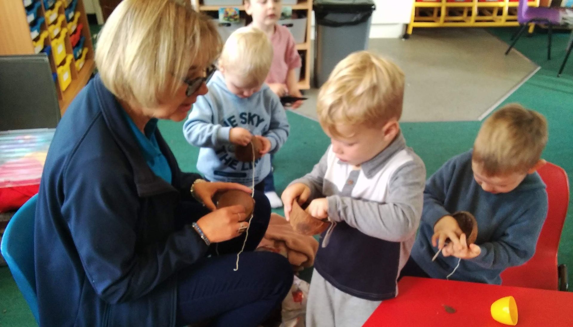 We have had another lovely Autumn week. The children have been making some very prickling but cute hedgehogs from conker shells hiding in their homes ready for Winter. We have started preparing coconut shells for bird feeders so that they don't get hungry in the Winter.