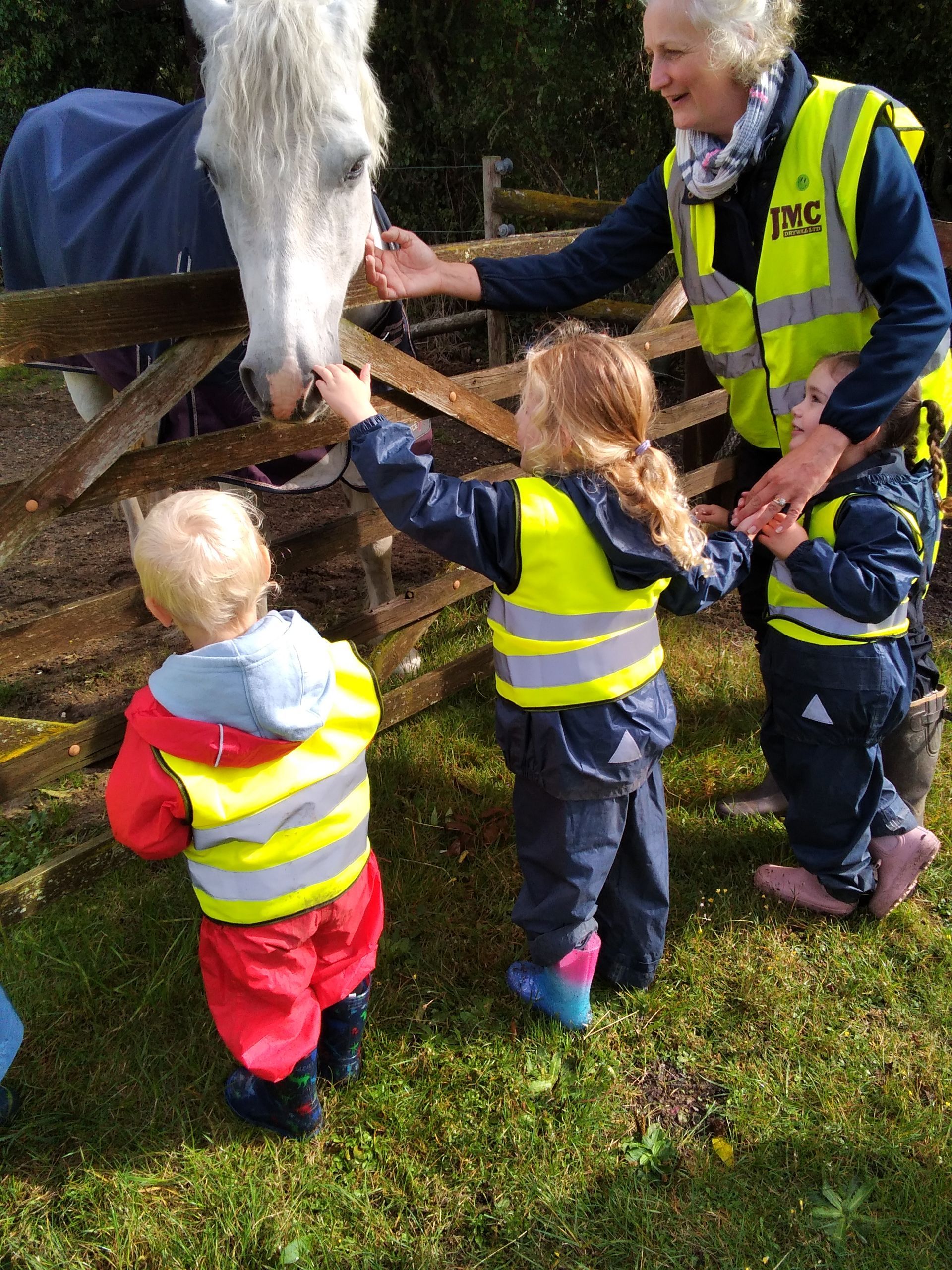 On Wednesday we had a lovely walk where we saw a muntjac (just), horses and a digger. On Thursday we had lots of fun at Forest School with the magnifying glasses, making music on the pots and pans and swinging from the rings and the branch swing to help develop the children's upper body strength. We read the poster about the red Kite which inspired us for next week's focus.