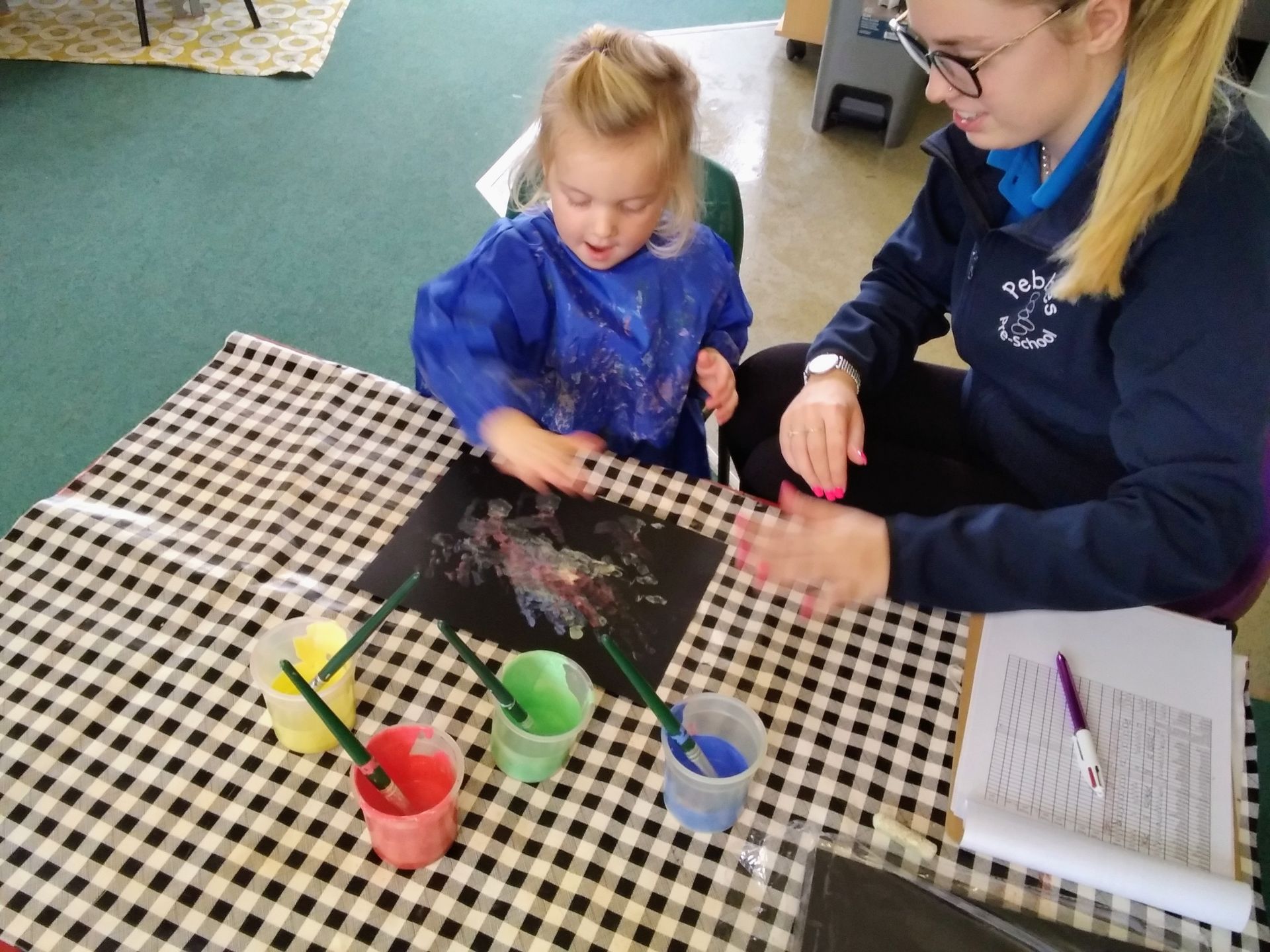 We have had a mixture of themes this week. On Monday and Tuesday we focused on Bonfire Night and Fireworks. The children created hand printed firework pictures with Ruby and in P.E. we moved like catherine wheels, rockets and the exploding ones, before dancing to 'Firework' by Katy Perry as little Ruby requested a dance when asked what she wanted to do in P.E.