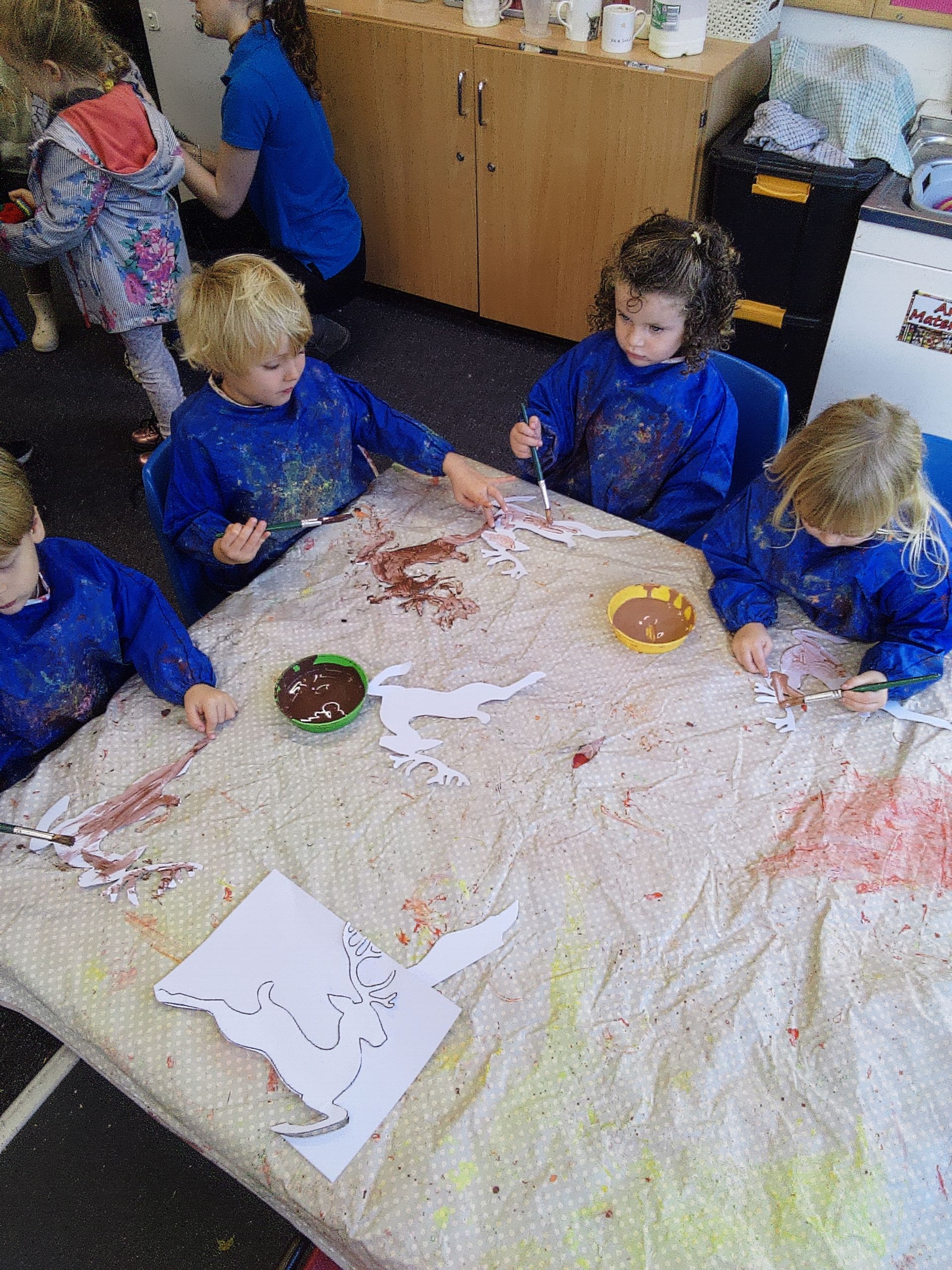 We have had a very crafty week this week. It has been display city. The children loved helping to create our Christmas display board which involved lots of painting - reindeers, the sleigh, Santa's face and hat as well as painting the boxes to make 3D presents and the fingerprint lights in the houses. Let's hope Santa is impressed when he comes to visit us at the Pebbles party.