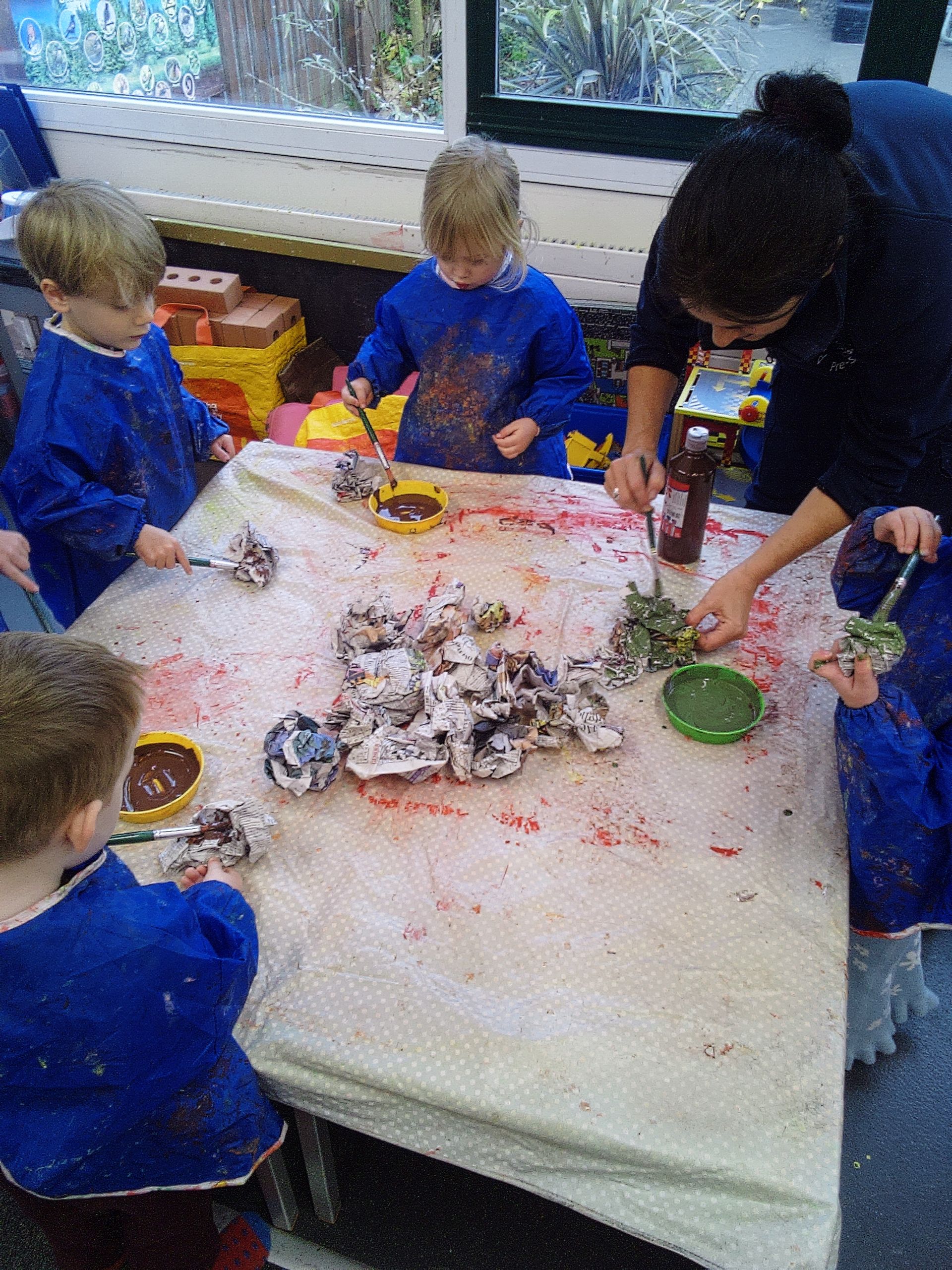 As it is the run up to Christmas, of course there are lots of creative activities going on that can not be mentioned. However, the Father Christmas display has had stars and snow added to make it look even more gorgeous. The Autumn nature scene has been adapted to show the animals in their burrows slowing down or hibenating for Winter with a little flurry of snow added. We can but hope.