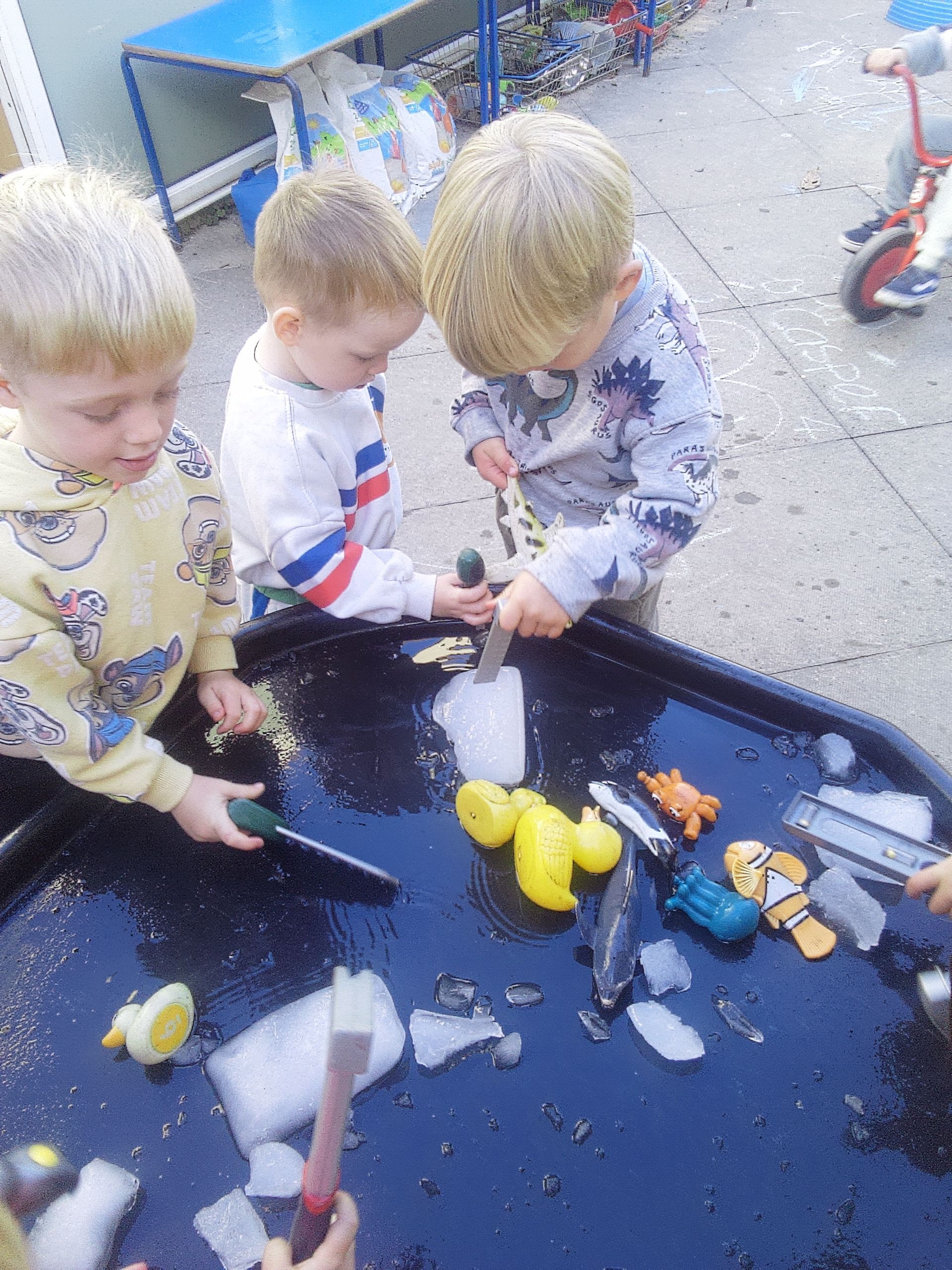 What a noisy, busy week we have had. We made our patchwork squirrel to add to our lovely Autumn display. We had great fun smashing the ice with our favourite outdoor tools.