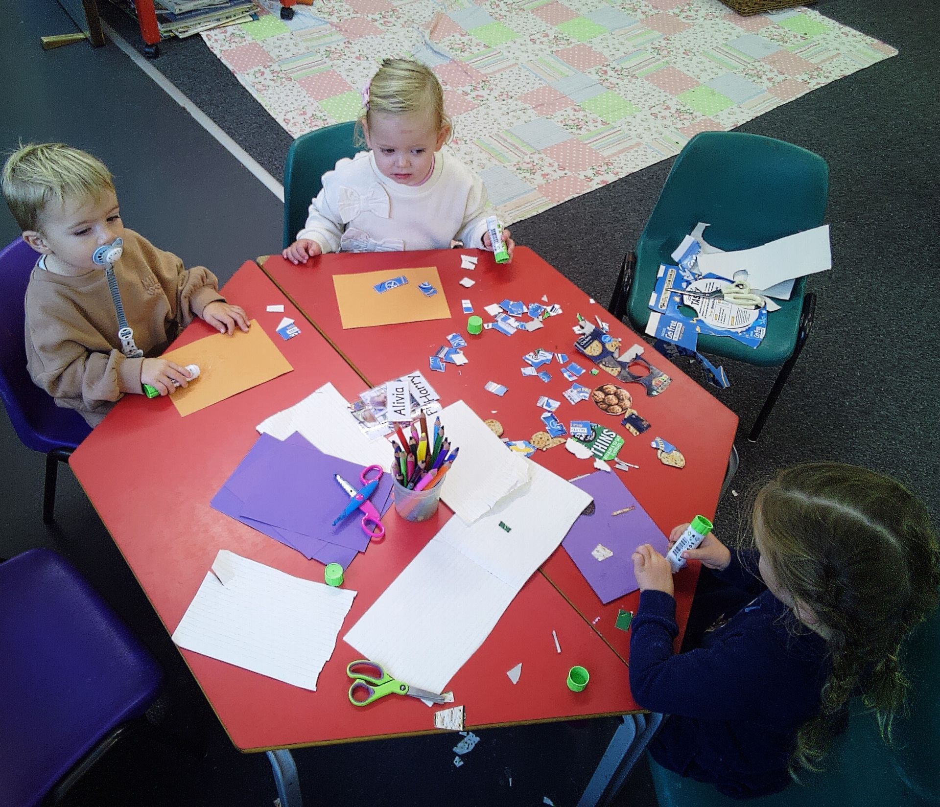 Next week we will be focusing on 'Us'. Using mirrors to look at our own faces - comparing eye colour, hair length and colour. For craft we will make our own faces. In the builders tray we will provide pasta for moving from container to container with laddles, big spoons and sieves.