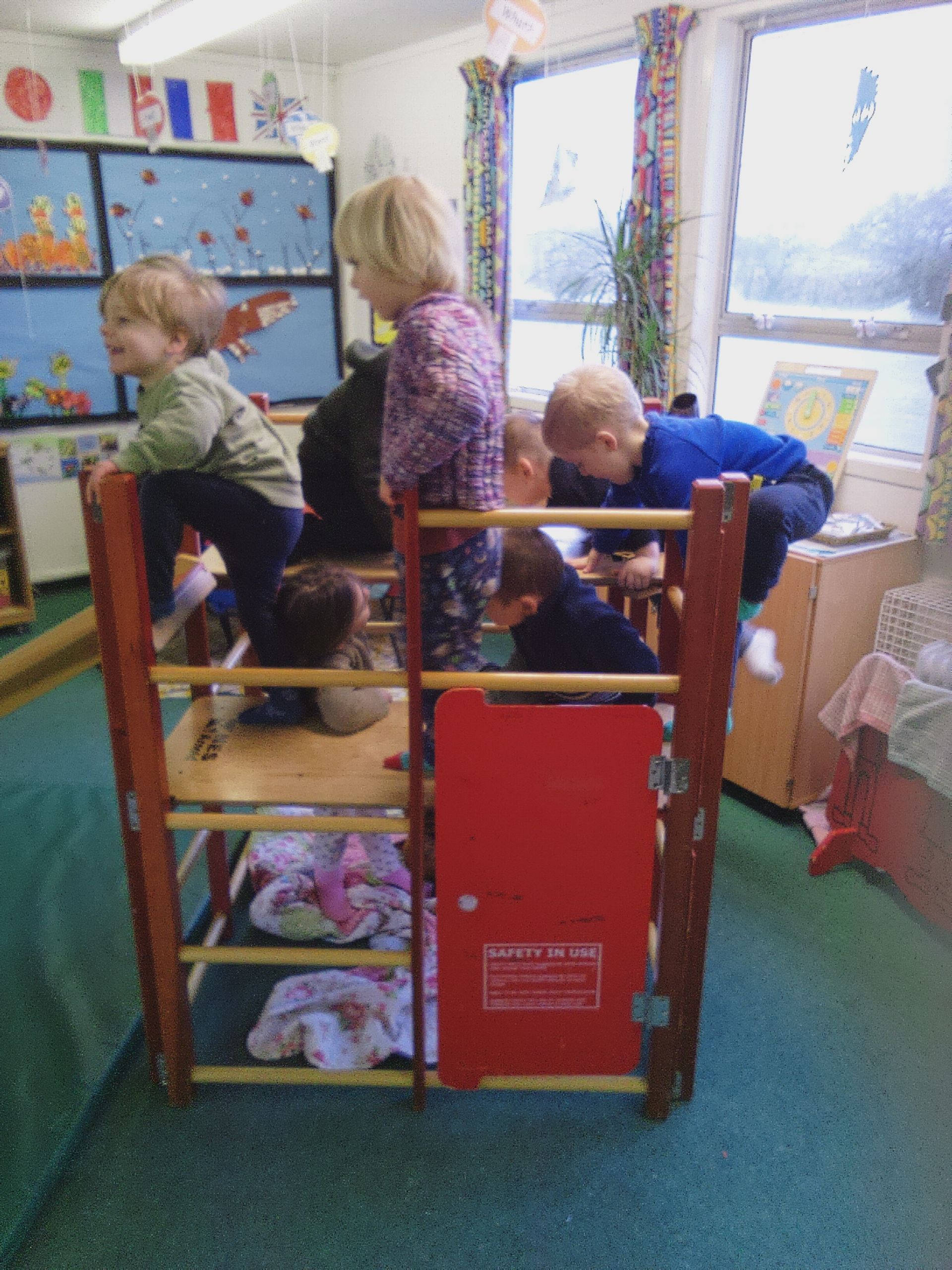 We have spent some time outside this week, despite the cold, when the sun was out it was nice playing in the garden and we loved the ice in the play area, even though it made our hands really cold. However, other days were just too cold. The children actually voted to stay in instead of going on a walk on Thursday, which is very unusual. It does mean we have spent lots of time on the climbing frame, keeping us active and warm. The whole reason for having it up at this time of year!