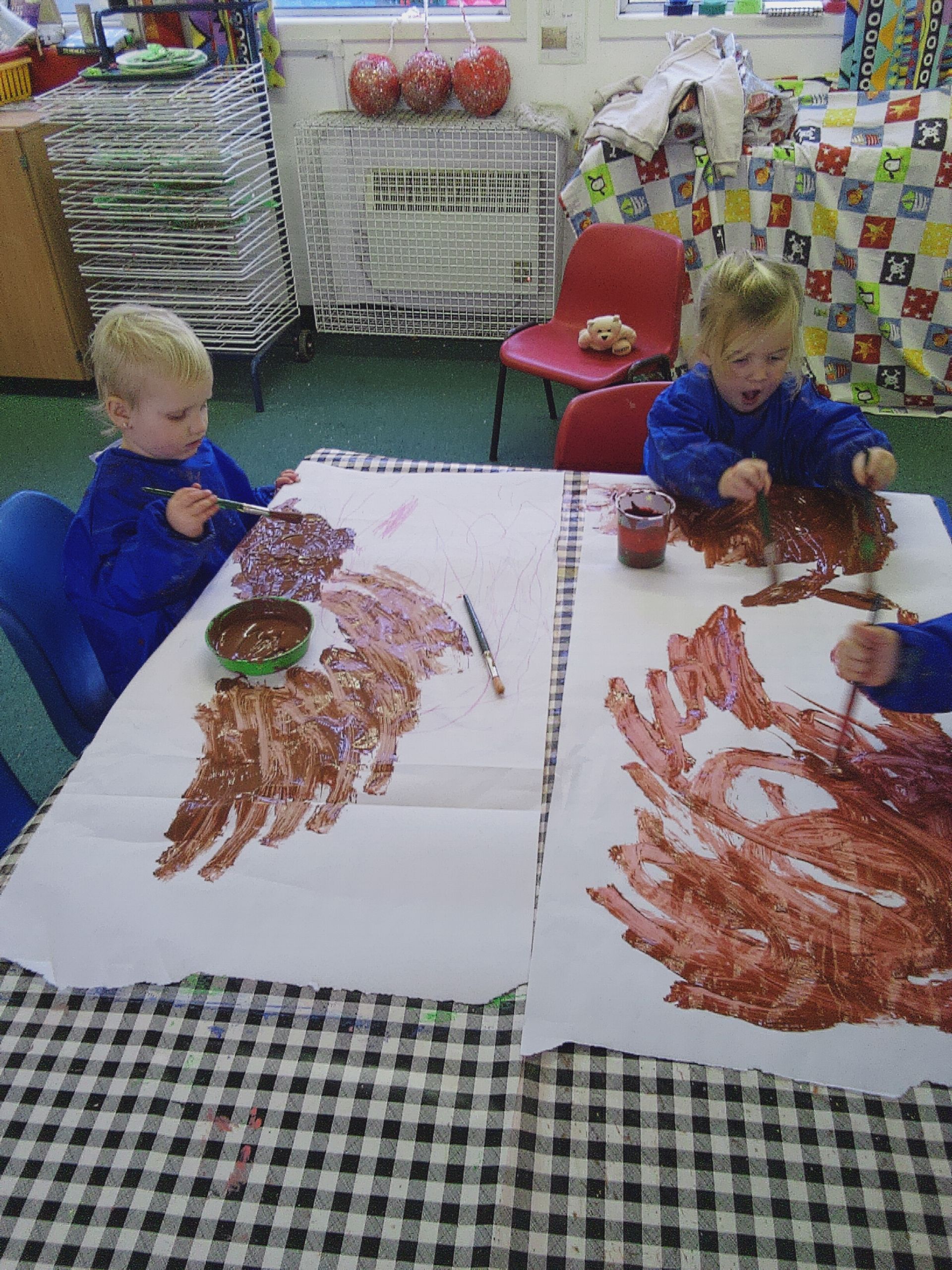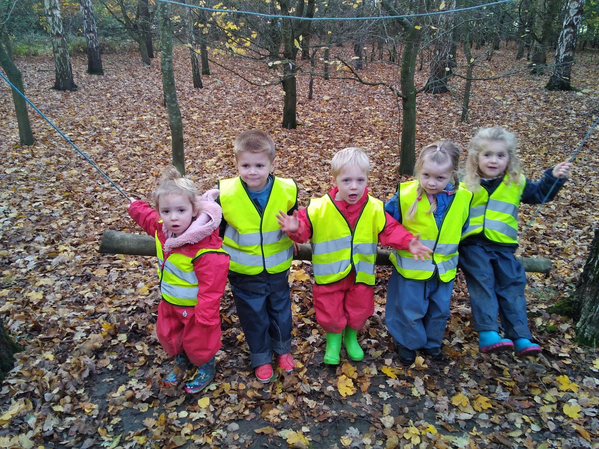 On Monday we went to Forest School where the children loved running up the little mound and then sliding down on their buttoms. The weather proof suits may not live to tell the tale as their were a lot of very muddy bottoms, but the children had a great time!