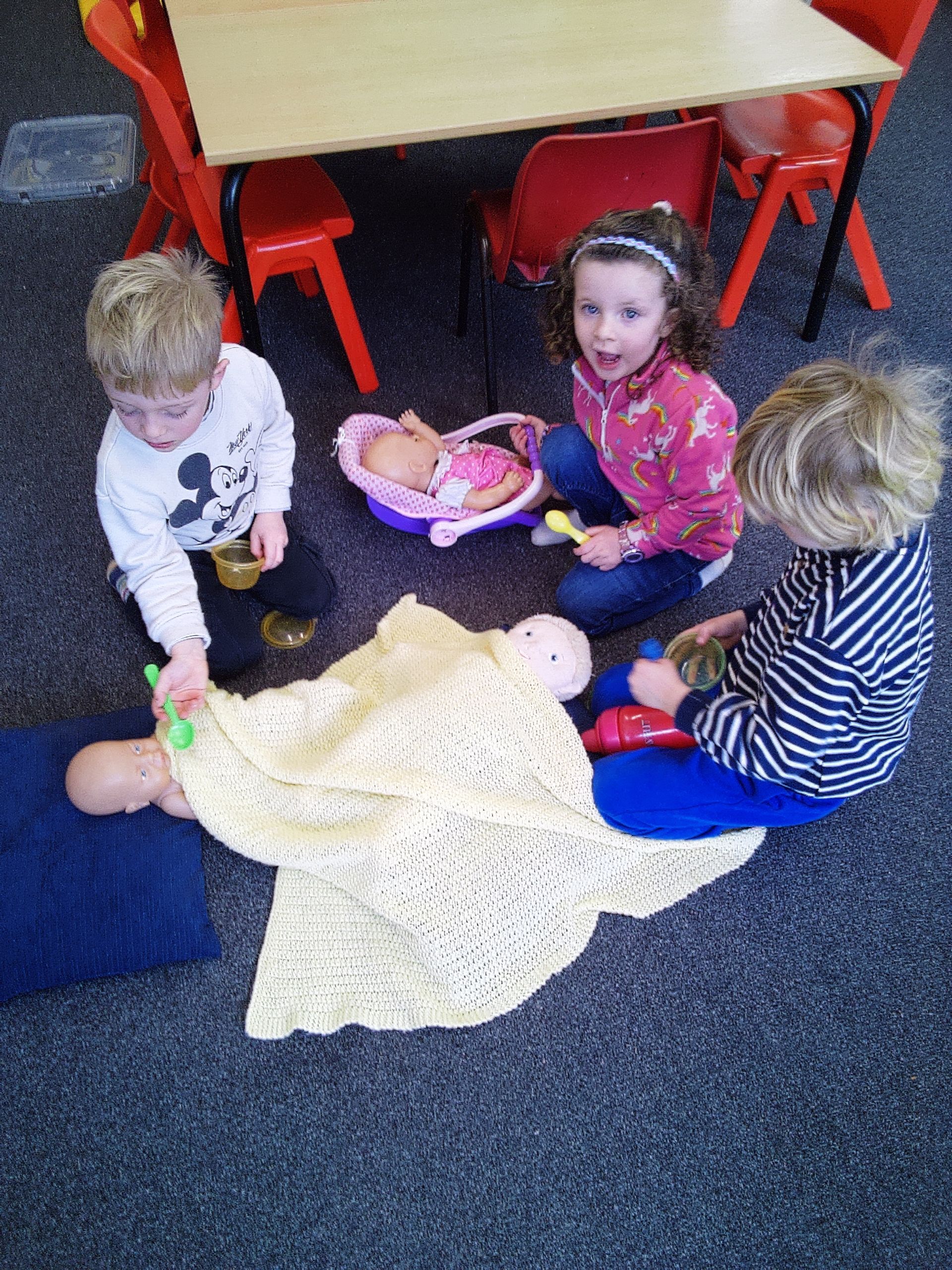We have found lots of ways to entertain ourselves, mainly indoors due to the horrible weather. As we couldn't use the school hall on Tuesday we played musical status and bumps in the classroom, in preparation for our Christmas party. The children also love jumping off of the footstool onto the mat. They were all great at climbing onto the stool with ease and jumping off in a variety of ways. The tricky bit was getting the children (especially the little ones to walk to the back of the queue and stay there). On the second occasion and with the assistance of the older children they did all manage it. Well for a very short time!