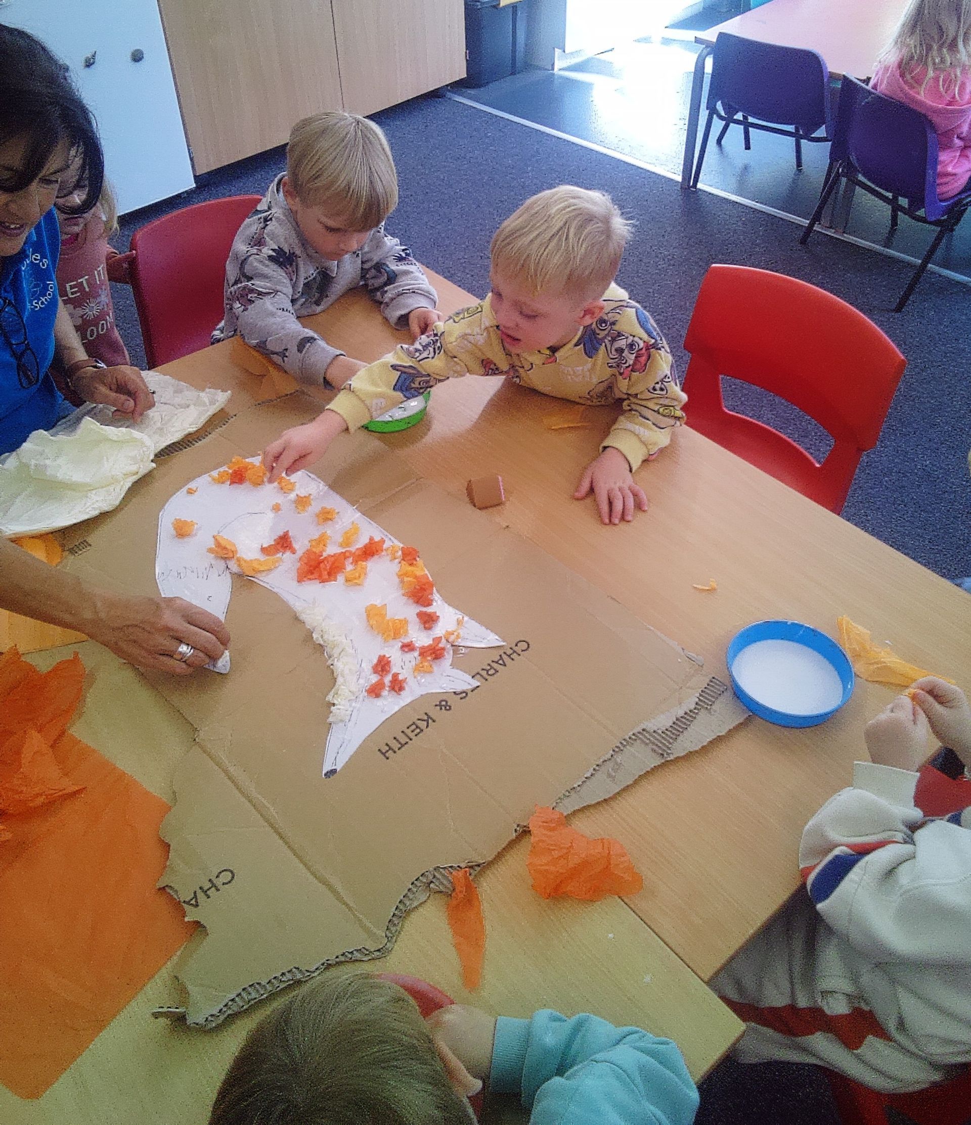 Stevie and the children out did themselves during the craft activity this week. The display tree now has a wonderful fox and badger underneath it and lots of little owls made by the children out of....you guessed it toilet rolls! We just need to add a squirrel.