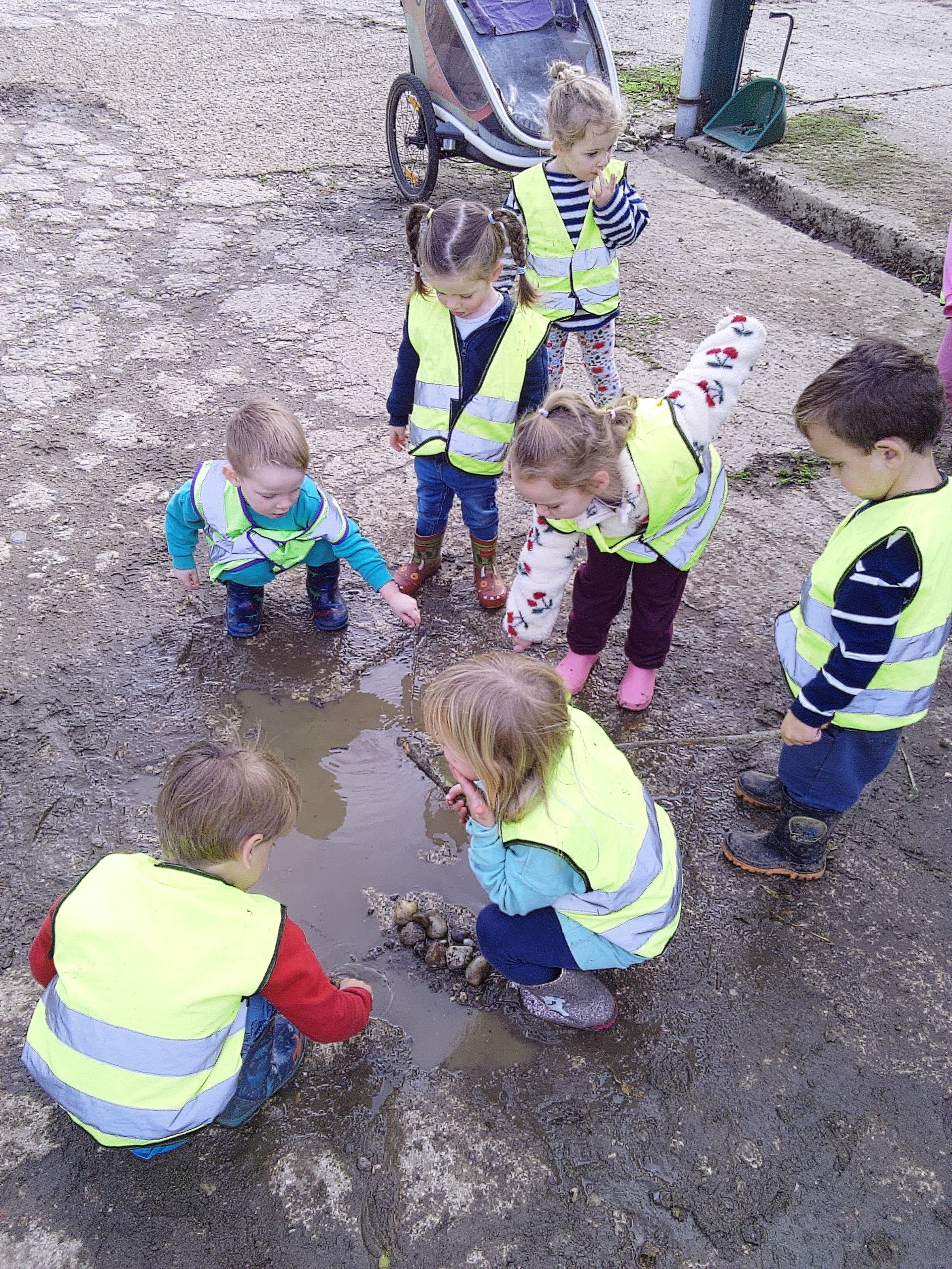 What an Autumn collection we had this week. There were conkers and their shells, acorns, walnuts, leaves and apples (kindly picked by Olivia and Poppy so afternoon snack. The children enjoyed look at the items under the microscrope to see them in more detail e.g. the veins in the leaves, the lines in the walnut case and the spikes on the conker shells. By opening the walnut cases we were able to talk to the children about decay as unfortunately they were definitely not edible. We used this expereince to help the children understand what magnifying means and to add new descriptive words to their vocabulary.