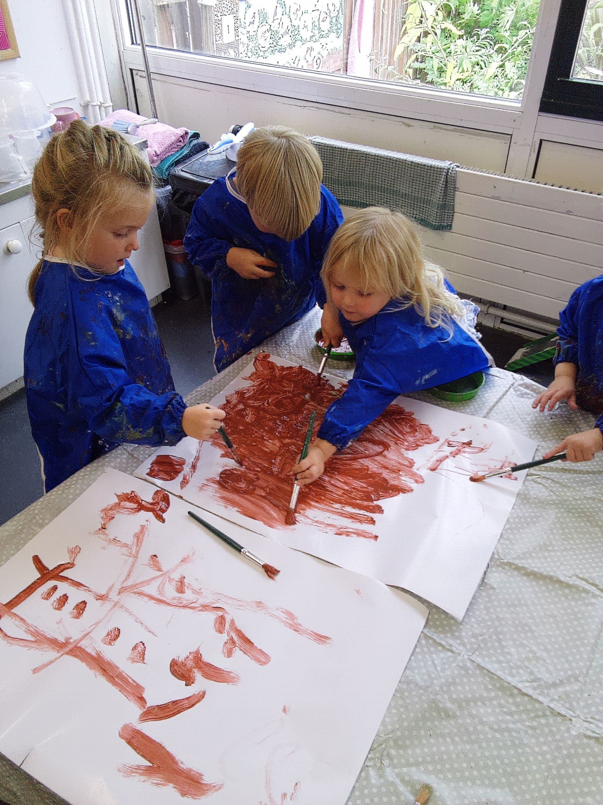 The children painted the tree truck and branches for our tree and we started to learn our new autumn song - 'I'm an acorn small and round'. The children love the knock, knock sound they have to make with their mouths.