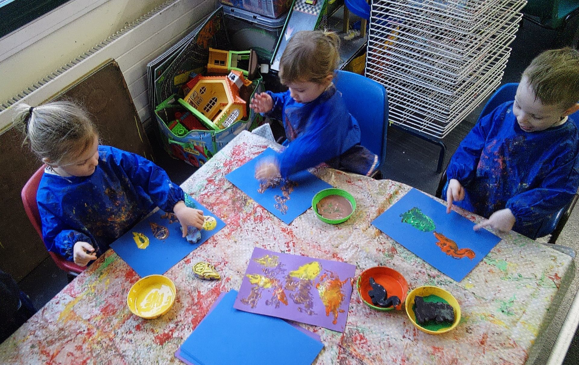We have loved our dinosaur week and found so many activtities to get involve in. There was dinosaur and meteor shower printing, the playdough (that improved since last week) was used with dinosaur cutter and for our toy dinosaurs to stomp on.