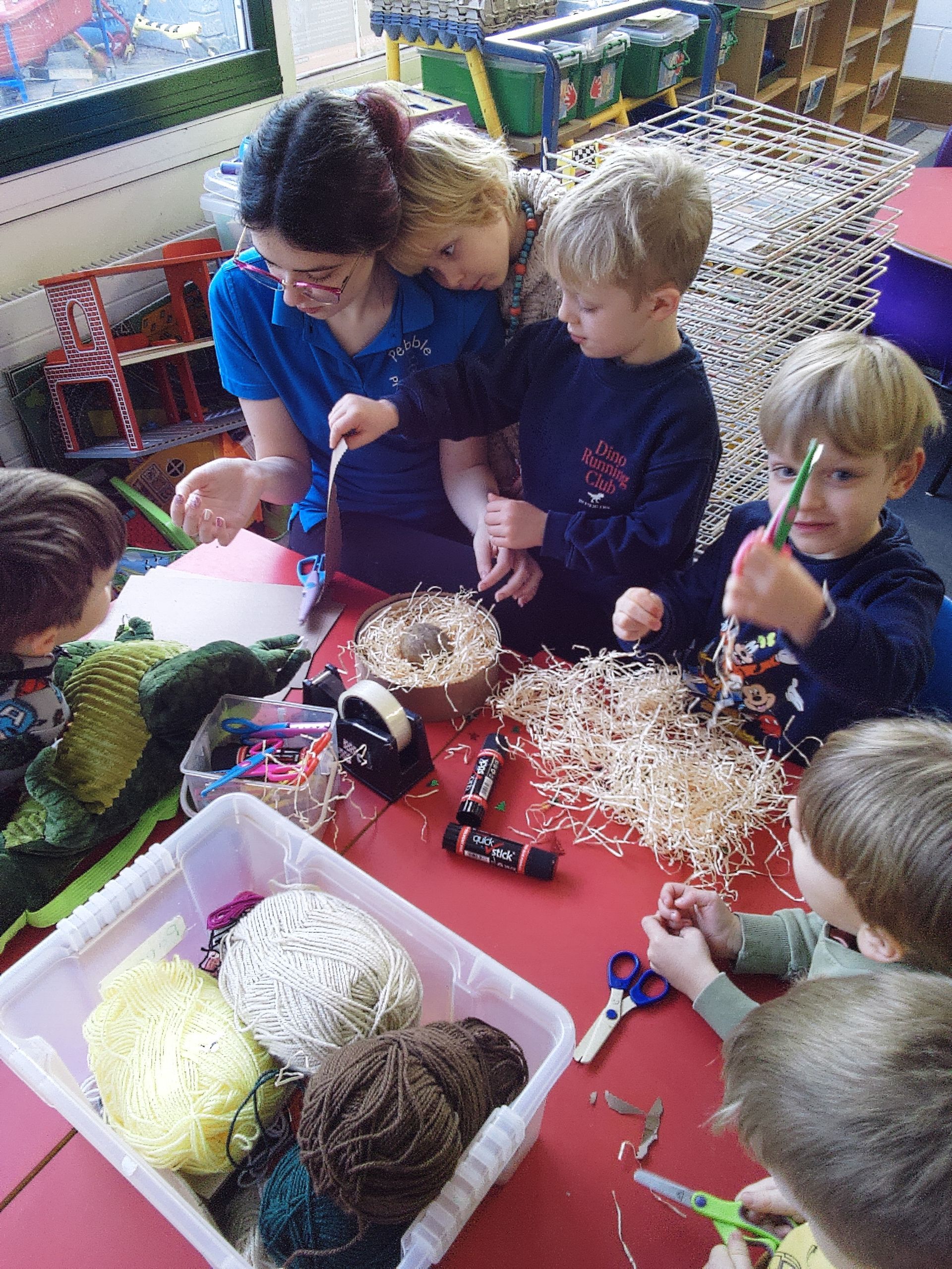 Martha and the children made a dinosaur nest for our dinosaur egg and Martha's large soft T-Rex is sitting on it to help it hatch....no sign of a baby T-Rex yet. Watch this space...