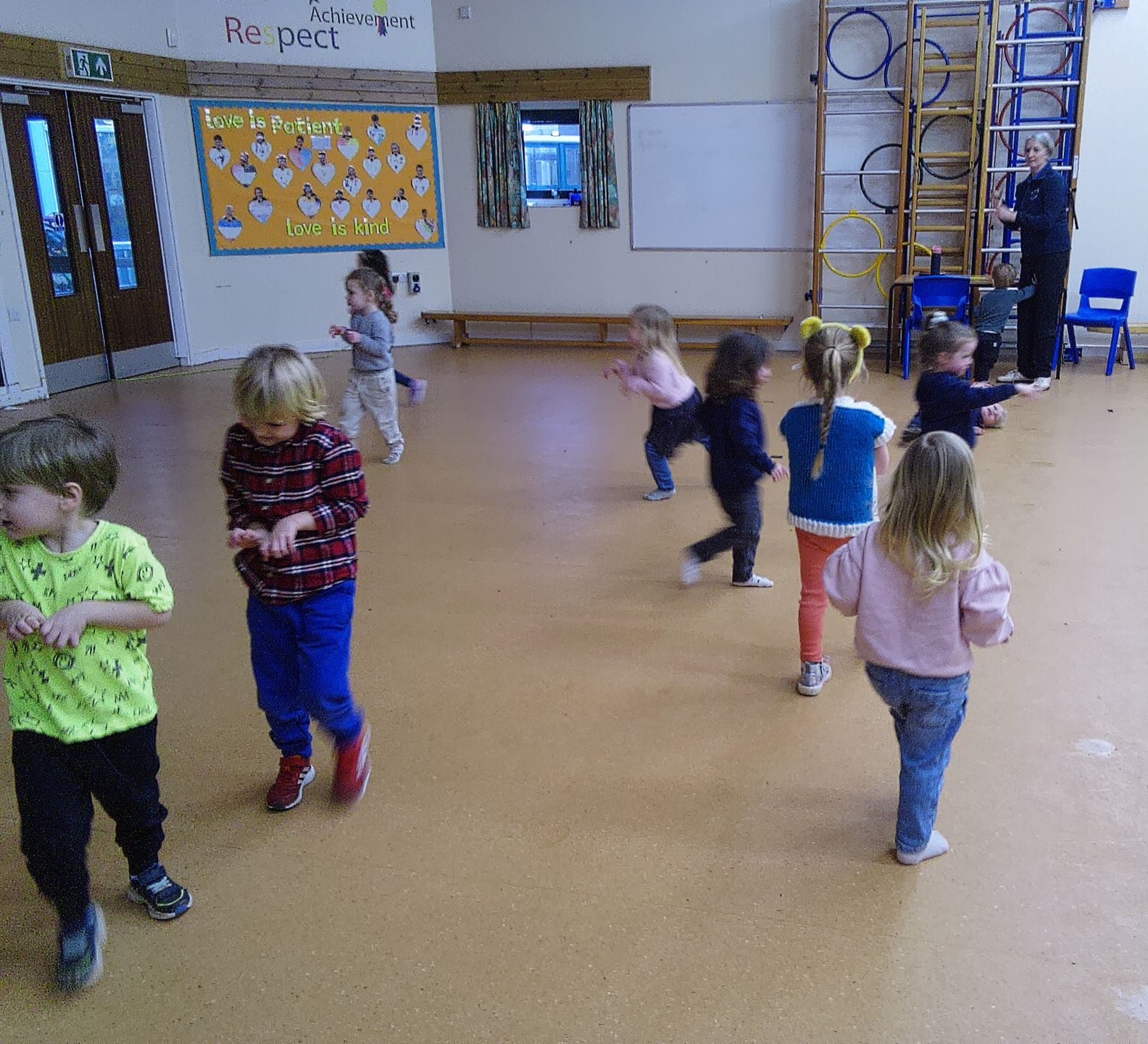 In P.E. the children pretended to be T-Rex, stegosaurus and Pterodactylus. They were particularly good at being T-Rexs with short arms and claws.