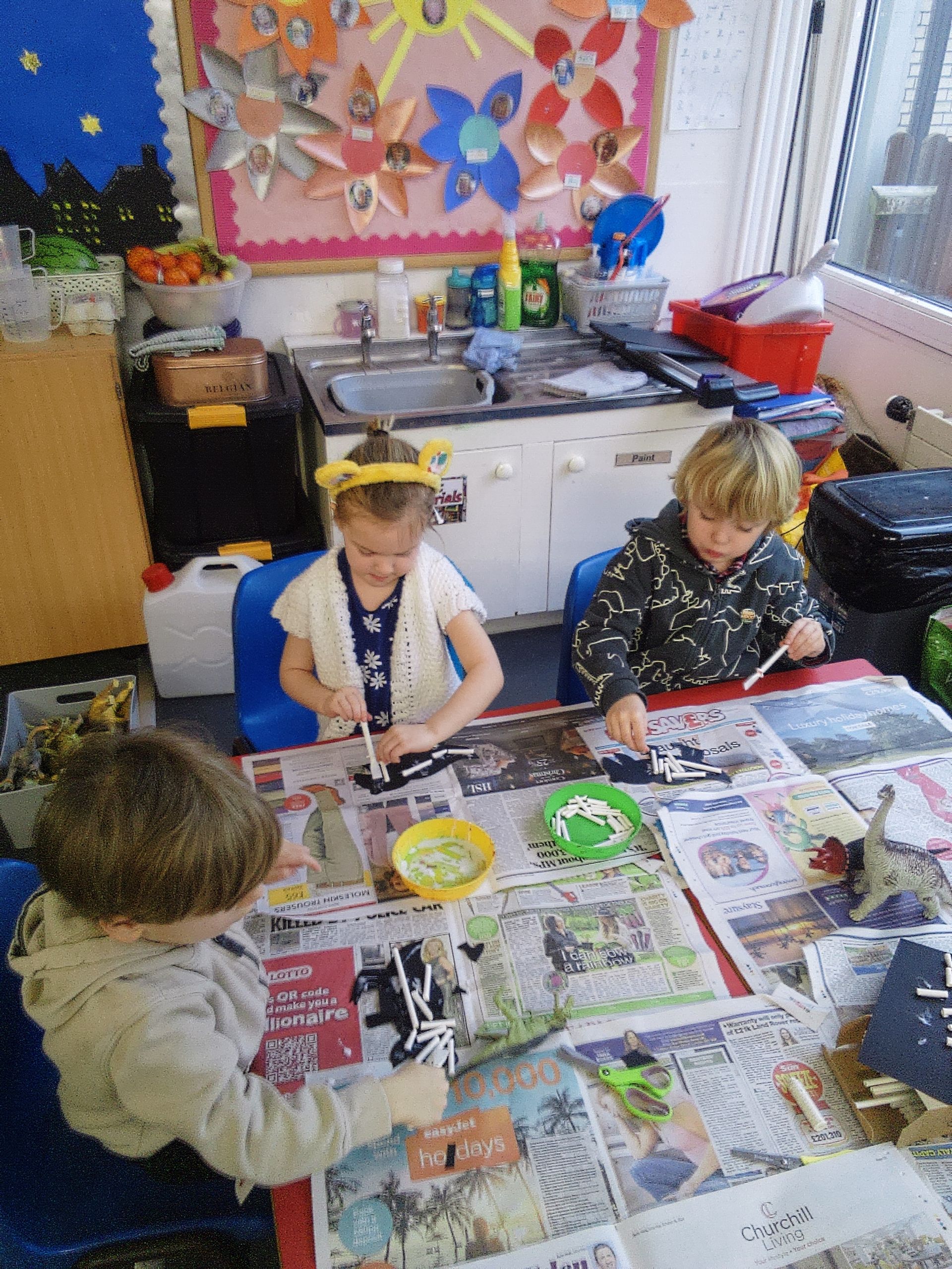 The children loved the dinosaur swamp that they made with cornflour and green food colouring. Unfortunately due to the weather we haven't had lots of charge to play with it, so hopefully, we will next week.
