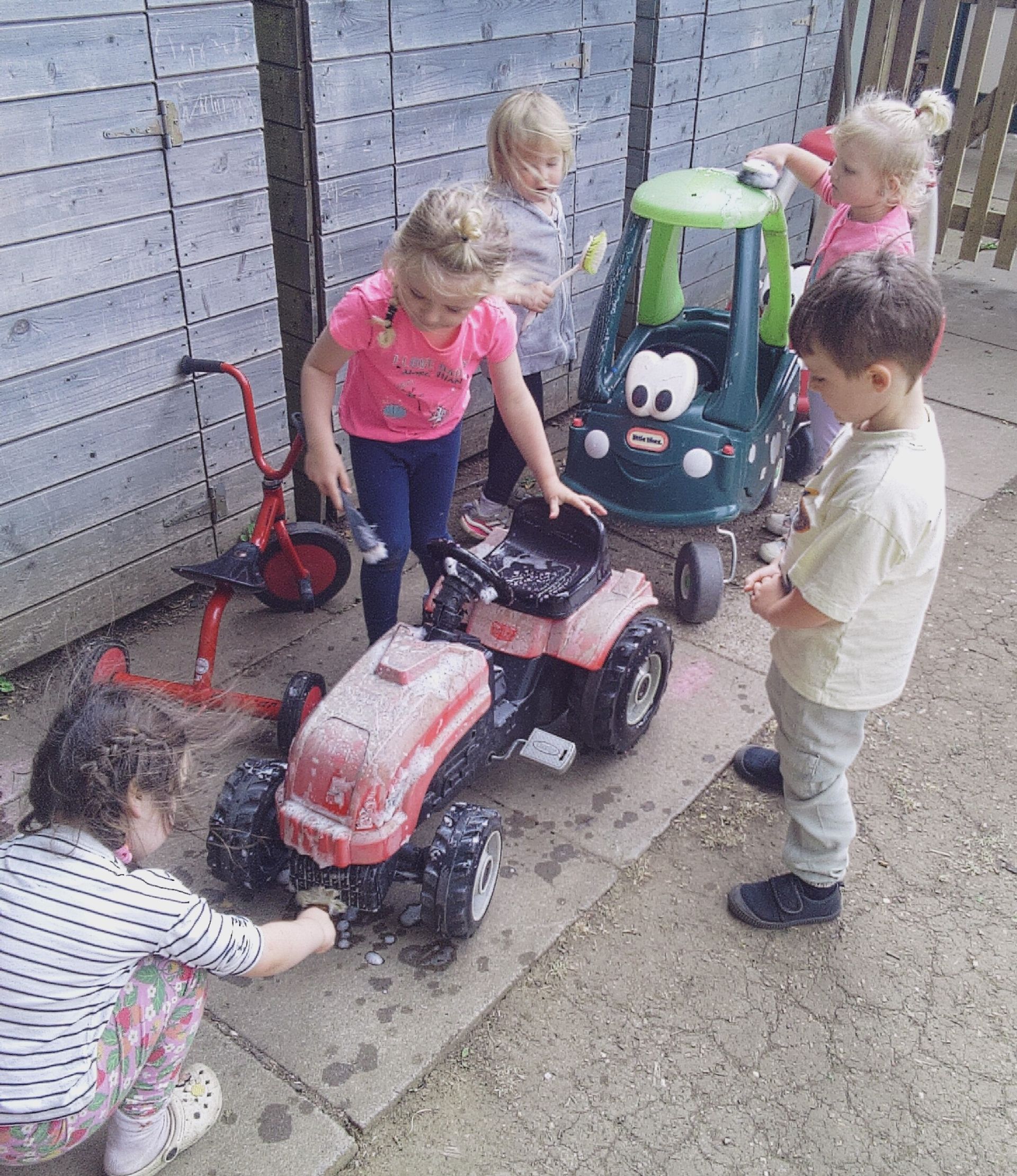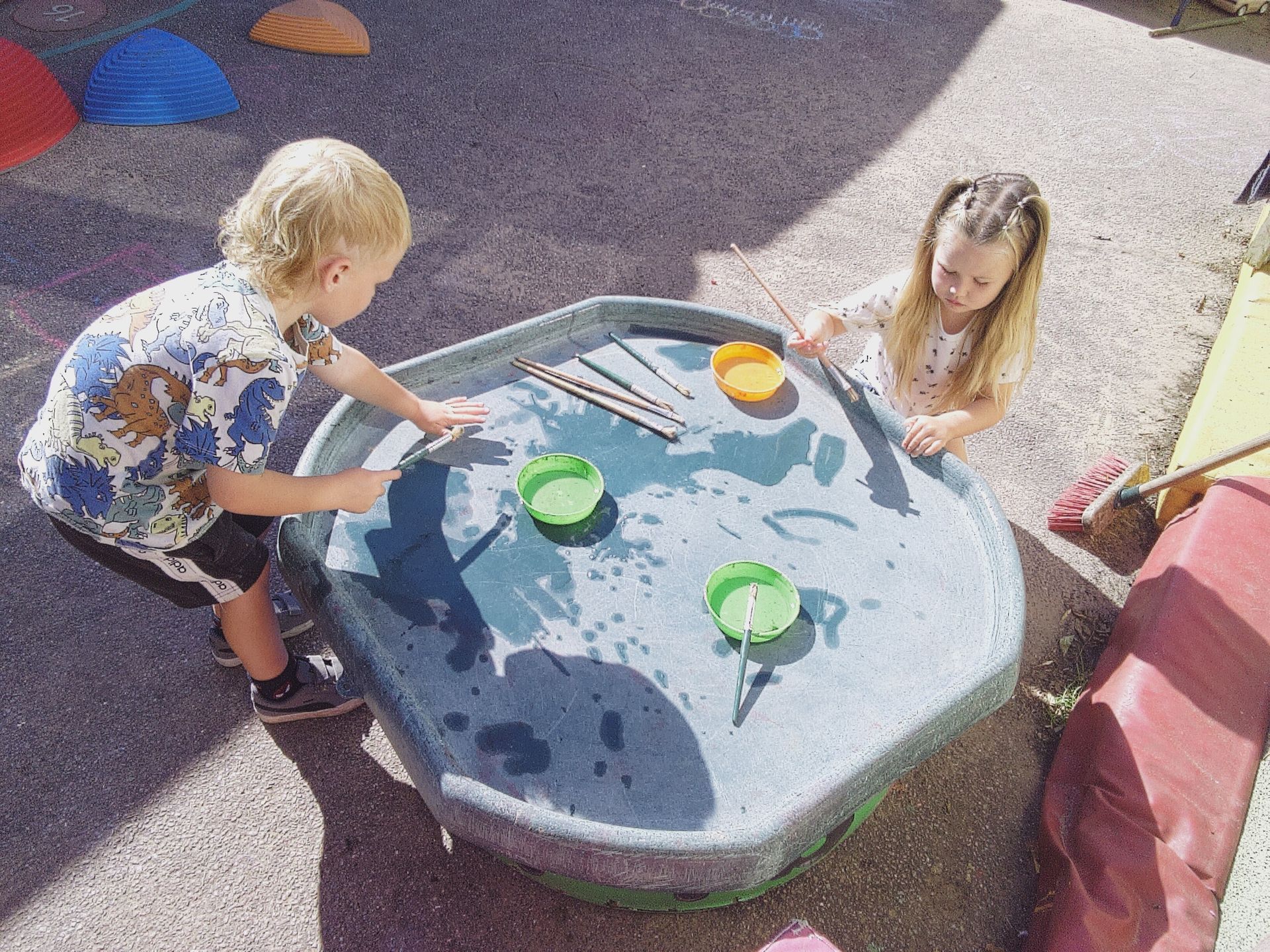 We have encouraged lots of water play this week, in the garden and outside area, in an attempt to keep the children cold. So feet and hands, as well as scrumbing brushes have been in the water.