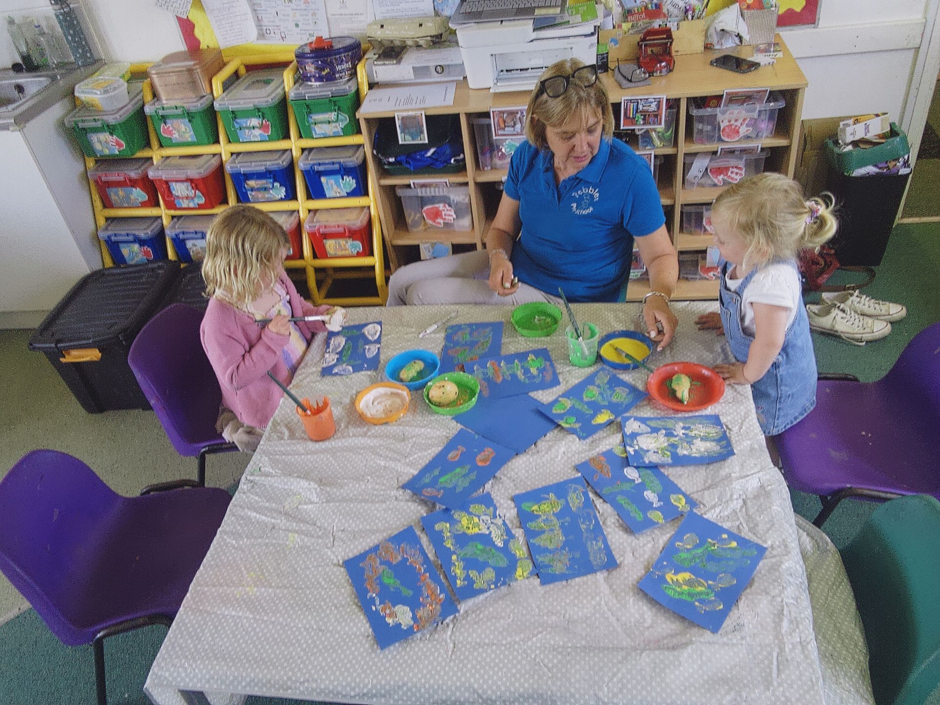 The children created some lovely sea scapes with fish and seaweed potato prints and we found lots of sea creature puppets which encouraged the children to take part in some lovely small world play. We were crabs, octopus and killer whales in P.E.